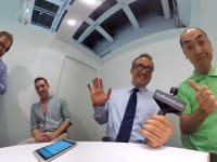 Google's Charles Armstrong (left) talks Google Maps Street View integration at the Ricoh Theta S unveiling.