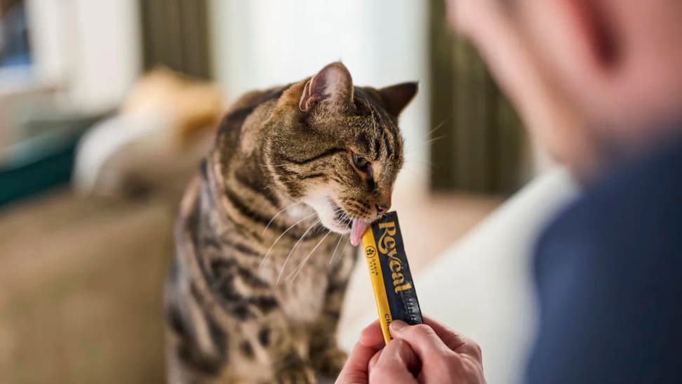 Lickable treats are basically the fastest way to get a cat to temporarily forgive you for existing. Reveal’s purées are designed to be creamy and simple, and they come in straightforward flavors like tuna and chicken. They work as a treat, a distraction during grooming, or a quick gotcha moment when your cat is being… well, especially a cat.